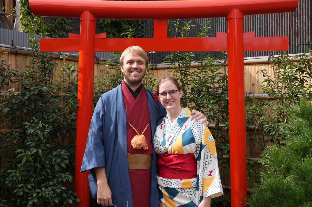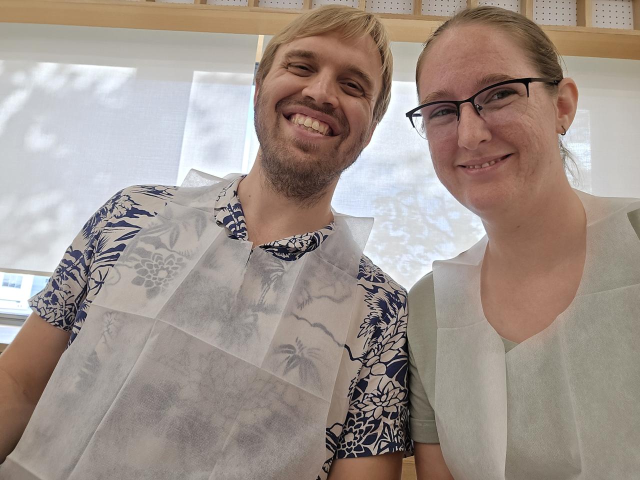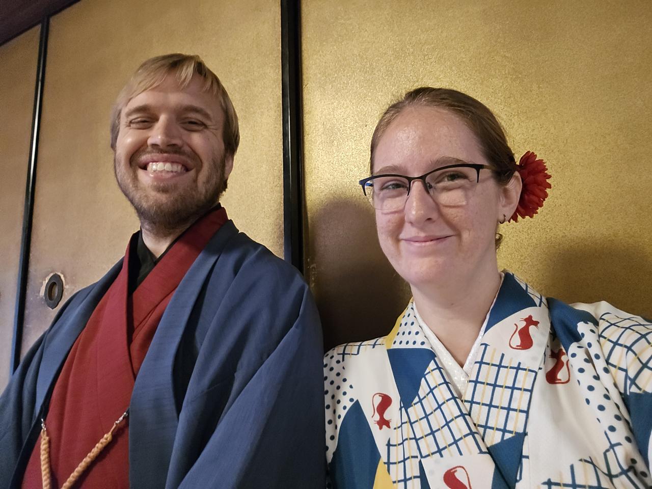 In Kyoto, we watched and pretended to participate in a traditional tea ceremony, in traditional garb! I don't have any pictures from the ceremony itself because I was occupied, you know, being in a tea ceremony, but they encouraged us to take pictures before and after.