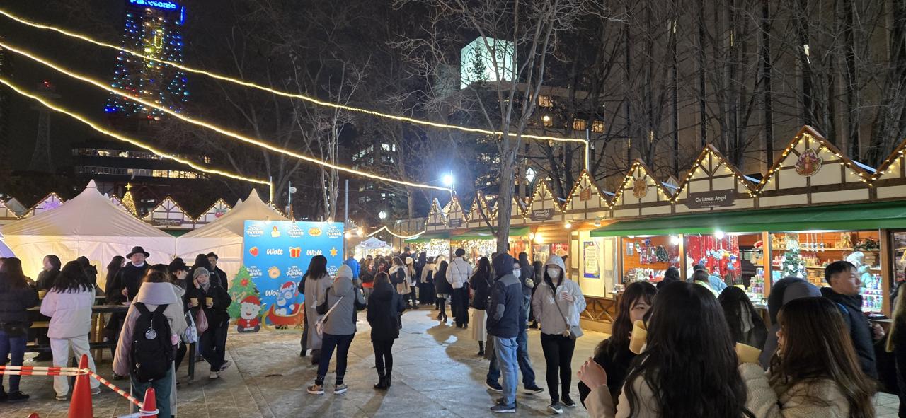 Sapporo's sister cities with Munich, apparently, so they have a Munich themed Christmas village all December; a lot of the shops are even staffed with Deutsche. They had a lot of German food - sausages, pretzels, candied almonds - and also a lot of churros, haha. Cassie and I had some mulled wine and hot beer which was lovely in the cold.