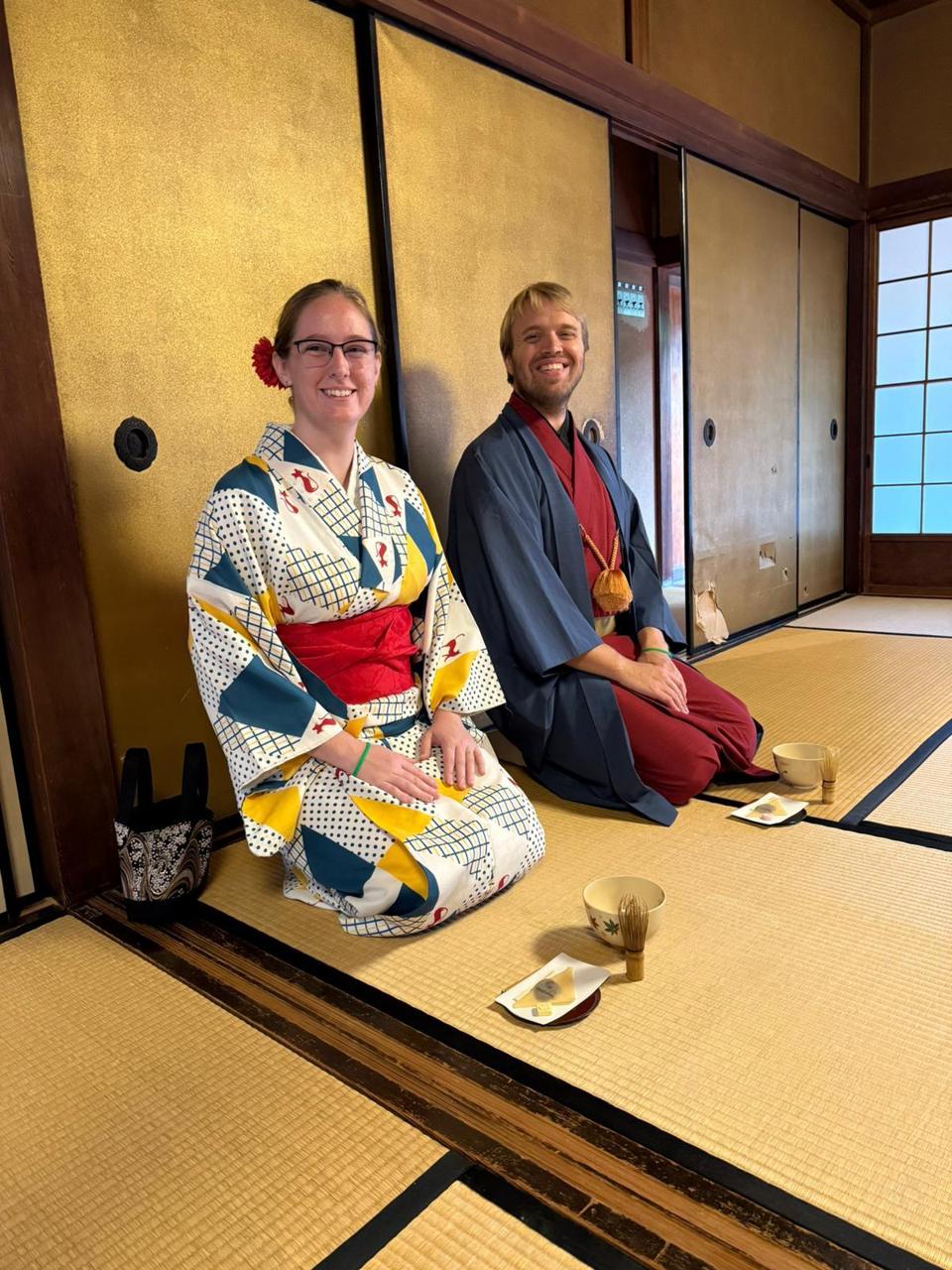 In Kyoto, we watched and pretended to participate in a traditional tea ceremony, in traditional garb! I don't have any pictures from the ceremony itself because I was occupied, you know, being in a tea ceremony, but they encouraged us to take pictures before and after.