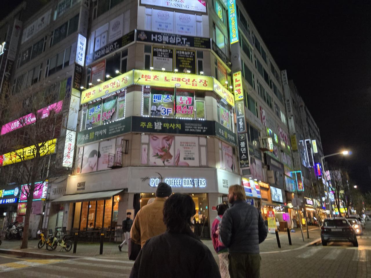 Our very first night we got in touch with my friend here and his wife; we hadn't really been planning to do anything, but they were about to go out to dinner right when we were getting settled, so they called us a taxi and we all got some Korean barbecue together.