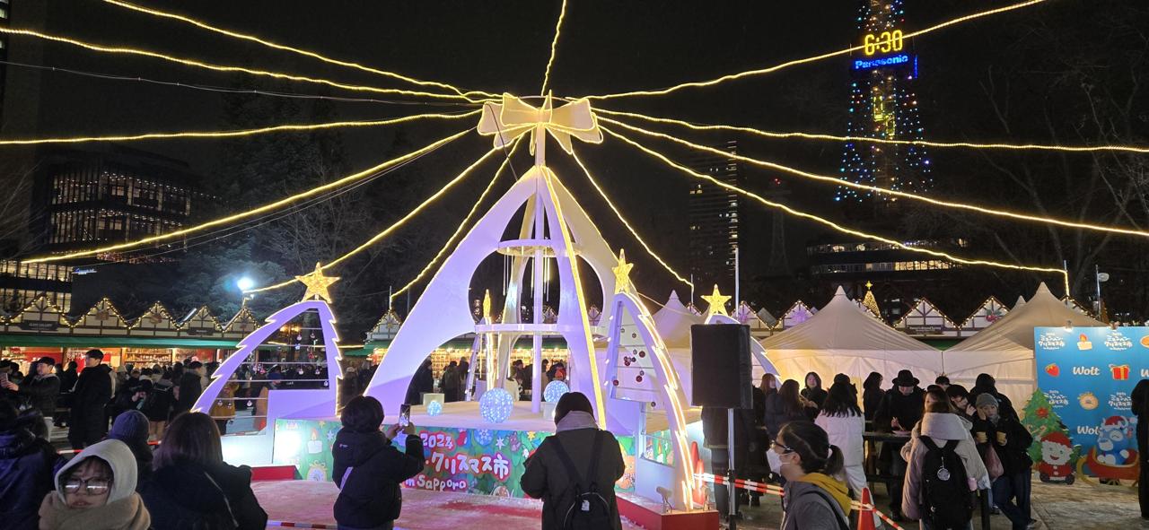 Sapporo's sister cities with Munich, apparently, so they have a Munich themed Christmas village all December; a lot of the shops are even staffed with Deutsche. They had a lot of German food - sausages, pretzels, candied almonds - and also a lot of churros, haha. Cassie and I had some mulled wine and hot beer which was lovely in the cold.